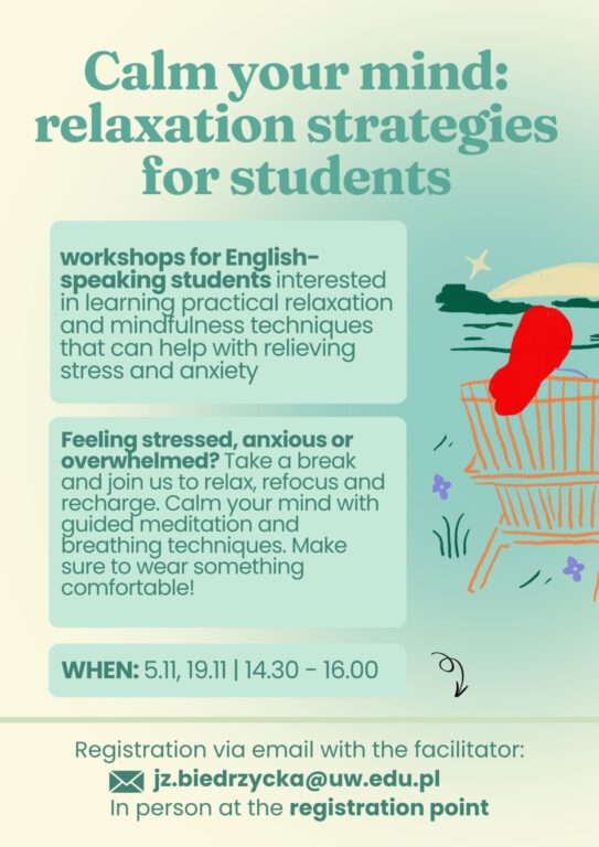 A confirmation will be sent to qualified participants. If you do not receive feedback or have further questions, please contact: welcome.event@uw.edu.pl